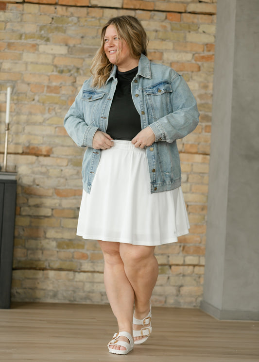 Stay comfortable and stylish no matter the time of year. During fall & winter pair your athletic skirt with leggings, a zip-up jacket, and sneakers for an active, layered look. For a more casual fall or weekend look, check out our denim skirts for versatile styles that pair perfectly with your active lifestyle. For spring & summer stay cool with breathable fabrics, a moisture-wicking top, and lightweight sneakers for all-day comfort.