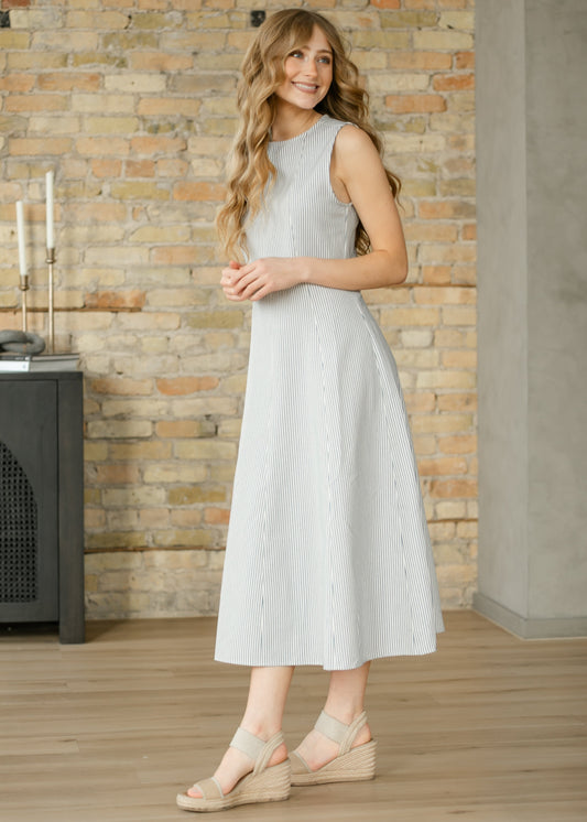 Jacey Blue Long Sleeve Smocked Waist Maxi Dress