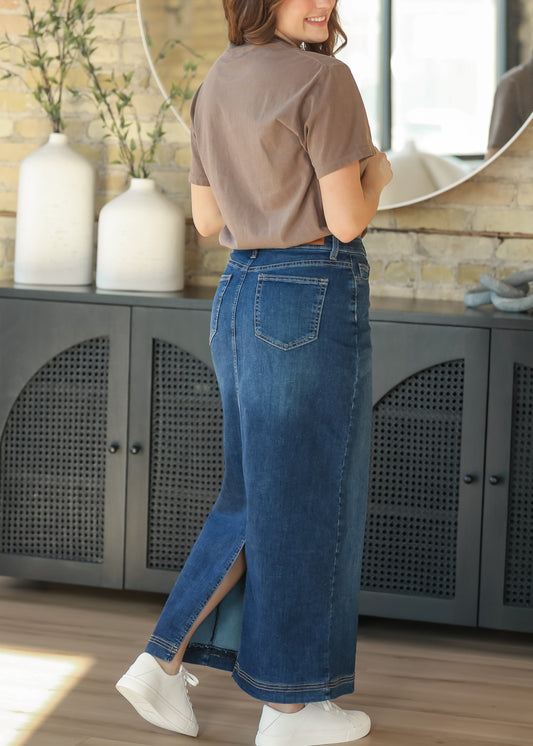 Bria Dark Wash Denim Maxi Skirt