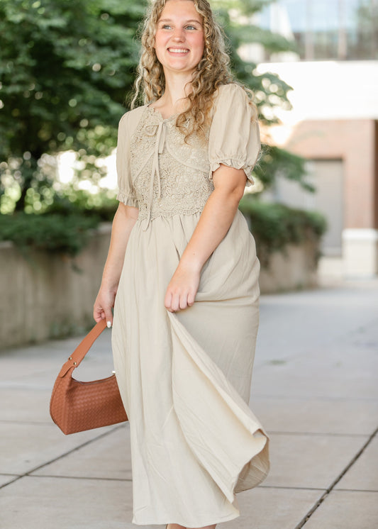 Sale 48% OffCrochet Lace Bodice Bow Detail Dress - FINAL SALE