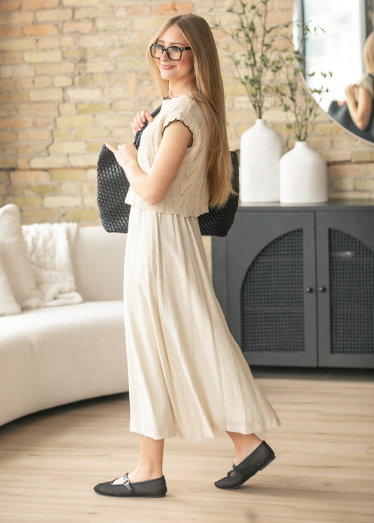 Mixed Media Knit Sweater Maxi Dress