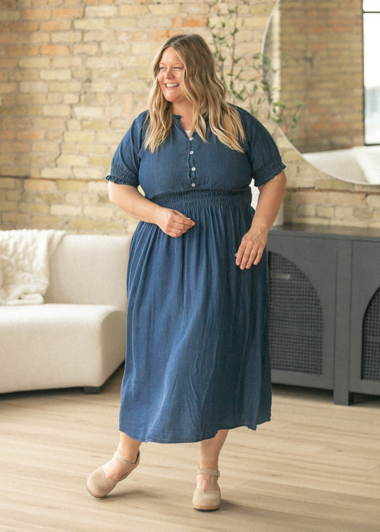 Rena Dark Chambray Midi Dress