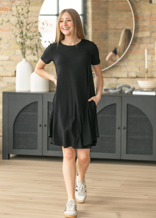 Short Sleeve A-Line Midi Dress