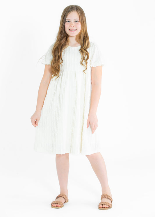Girls Cream Textured Short Sleeve Dress - FINAL SALE