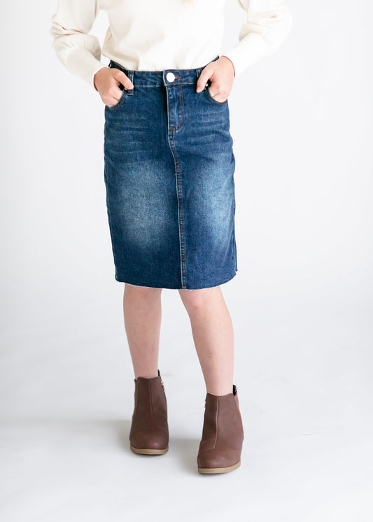 Girls Remi Raw Hem Denim Midi Skirt - FINAL SALE
