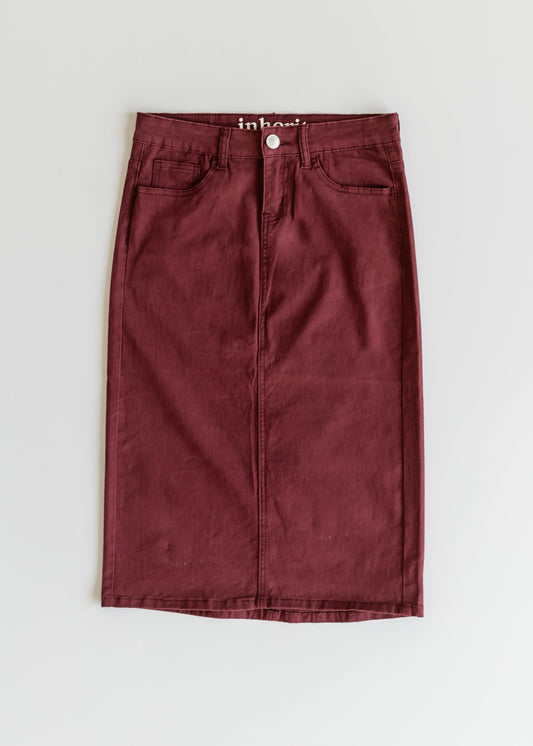 Remi Burgundy Denim Midi Skirt - FINAL SALE