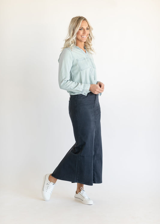 Remi Navy Denim Midi Skirt - FINAL SALE