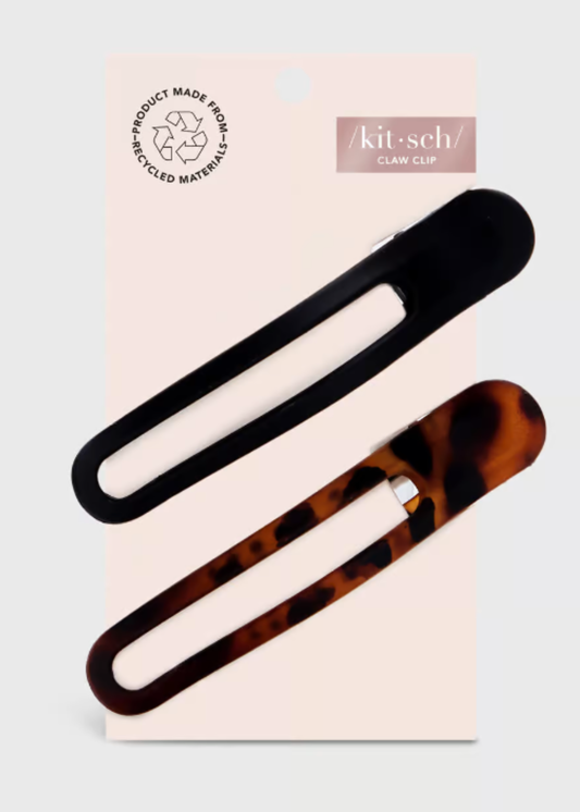 Kitsch™ Flat Lay Claw Clip 2pc Flat Black + Tortoise