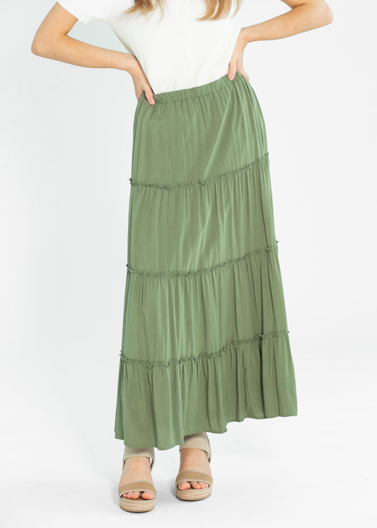 Tiered Button Up Olive Maxi Skirt - FINAL SALE