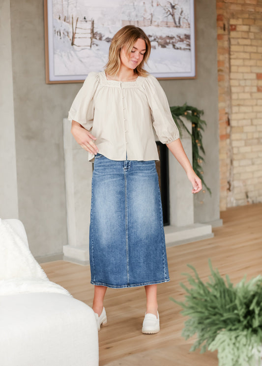 Medium Wash Back Slit Denim Skirt - FINAL SALE