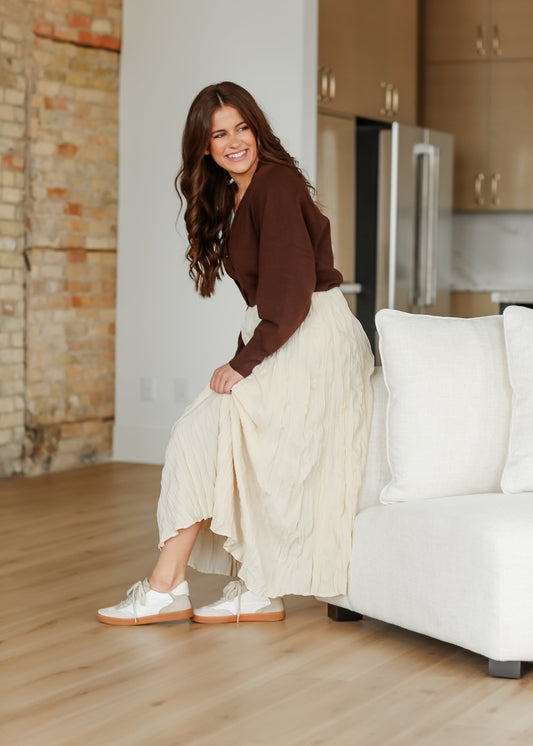 Natalie Crinkle Cream Maxi Skirt - FINAL SALE