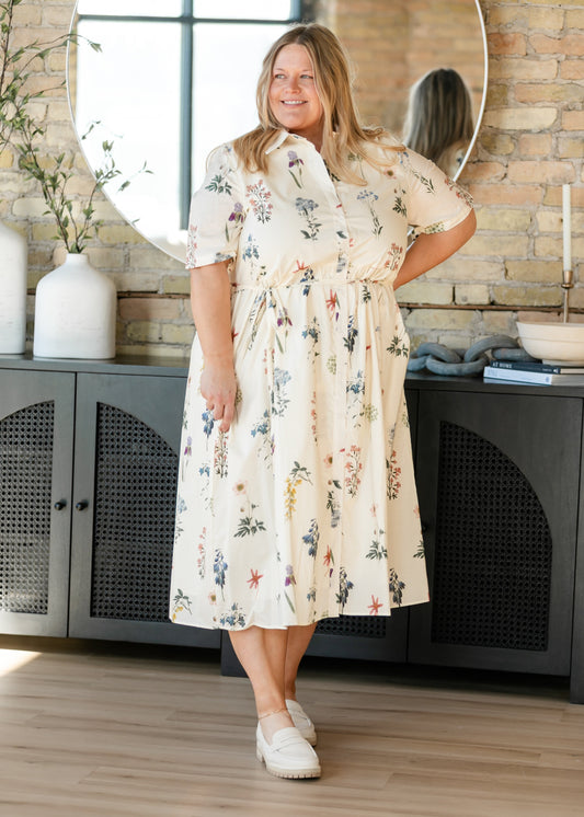 Sale 10% OffAbstract Floral Button Down Midi Dress - FINAL SALE