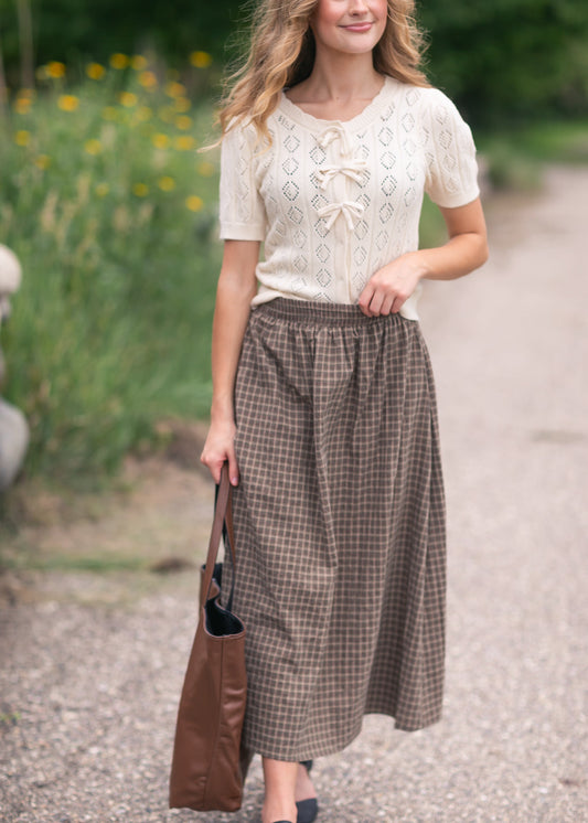 Midi skirts are a timeless and versatile choice that transitions beautifully through every season: Pair a midi skirt with a cozy sweater and ankle boots for a chic, layered look for fall. In winter add tights, knee-high boots, and a tailored coat for warmth and style. Look for lighter fabrics and floral prints to complement the fresh, blooming season. Choose breathable materials like cotton or linen to stay cool while looking effortlessly put together.