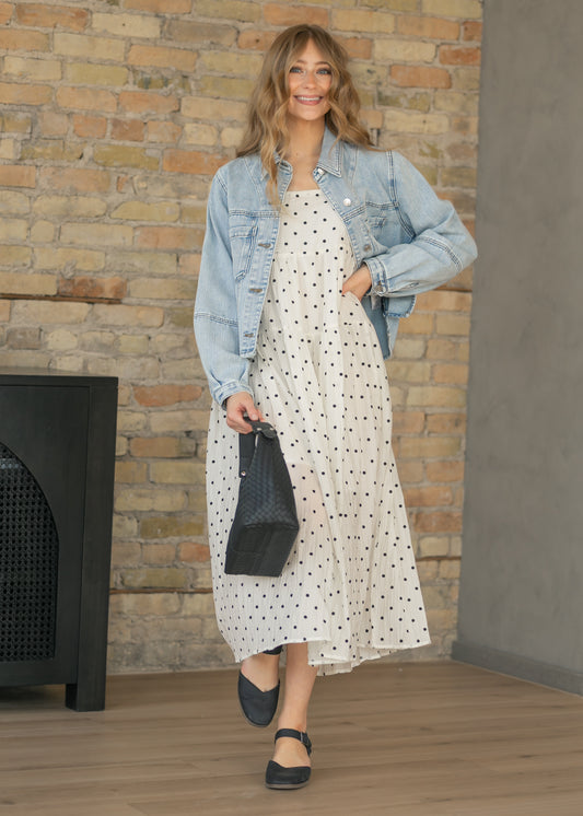 White is one of the easiest colors to style because it works with almost anything. For a clean classic look, pair with tan or nude sandals and gold jewelry. For more contrast, a black bag or belt sharpens the look instantly. A navy cardigan layered over a white dress extends the outfit into cooler weather without losing the freshness of the color. For special occasions like baptisms or graduations, keep accessories minimal. White does most of the work on its own.