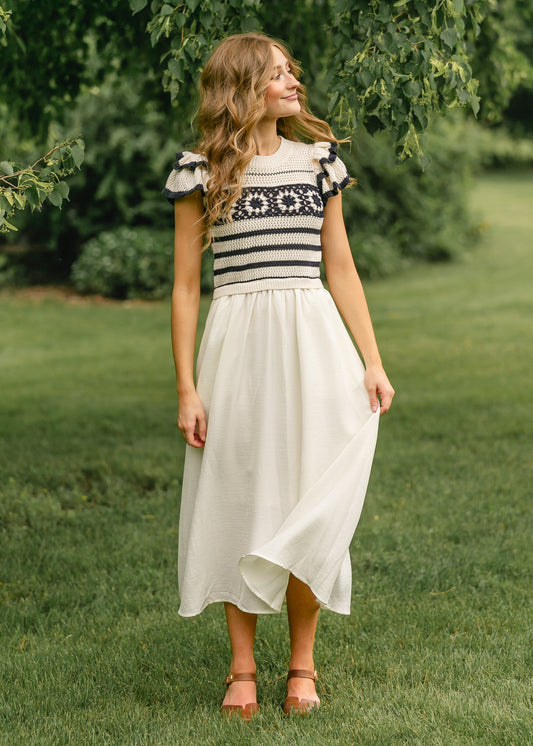 Eyelet Yoke Sweater Knit Top - FINAL SALE