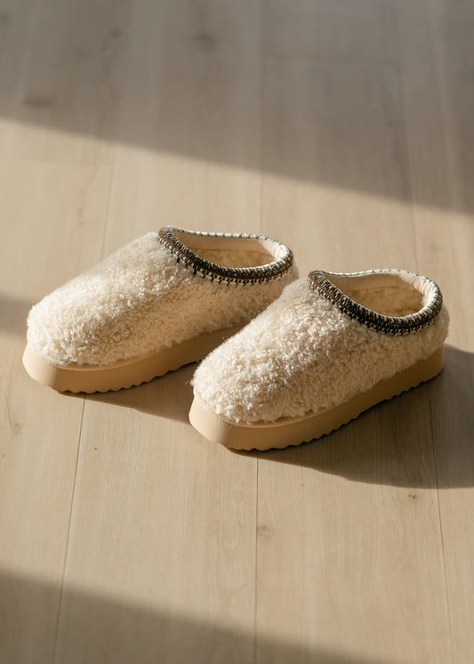 Crochet Edge Slip-on Sherpa Platform Slippers - FINAL SALE