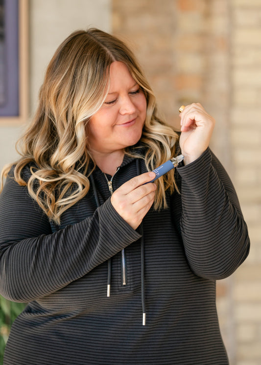 Landon Quarter Button Black Striped Top - FINAL SALE