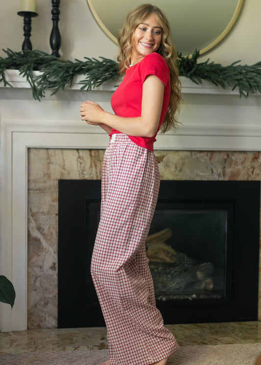 Gingham Elastic Waist Pants