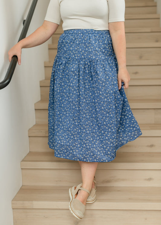 Aria A-line Blue Floral Midi Skirt - FINAL SALE