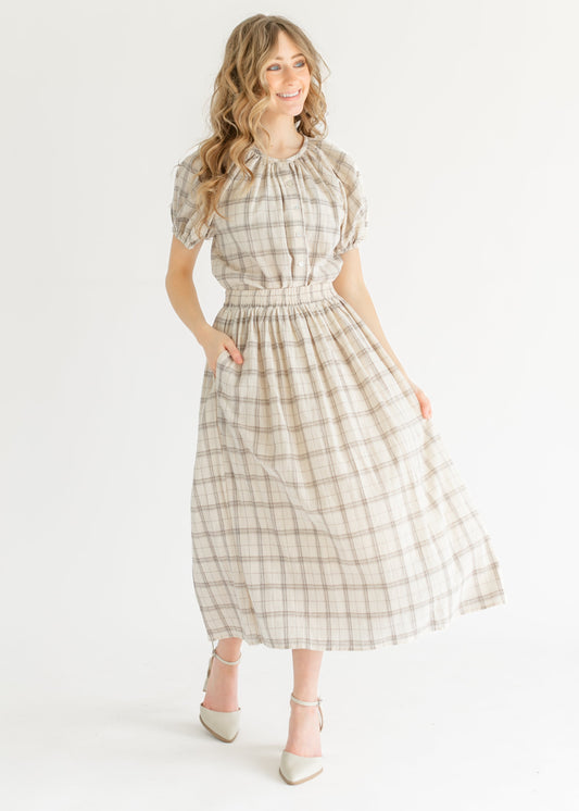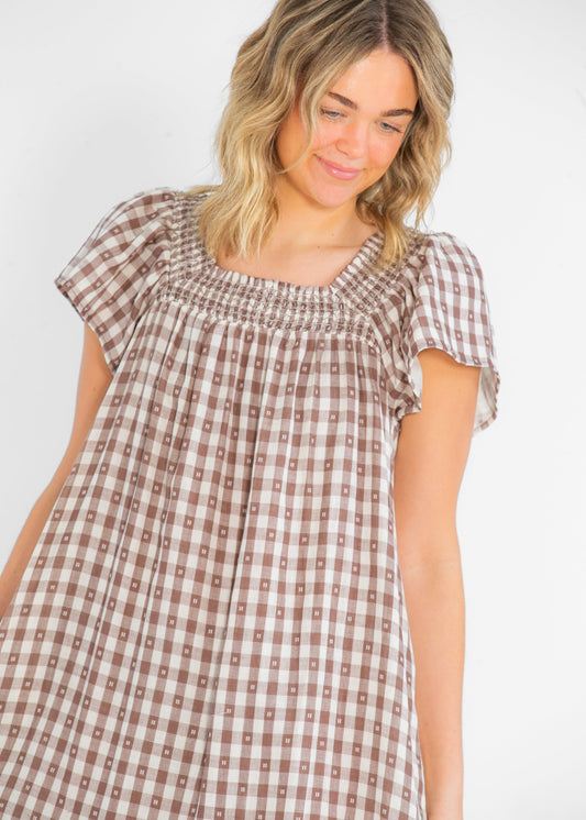 Andie Brown Gingham Short Sleeve Maxi Dress - FINAL SALE
