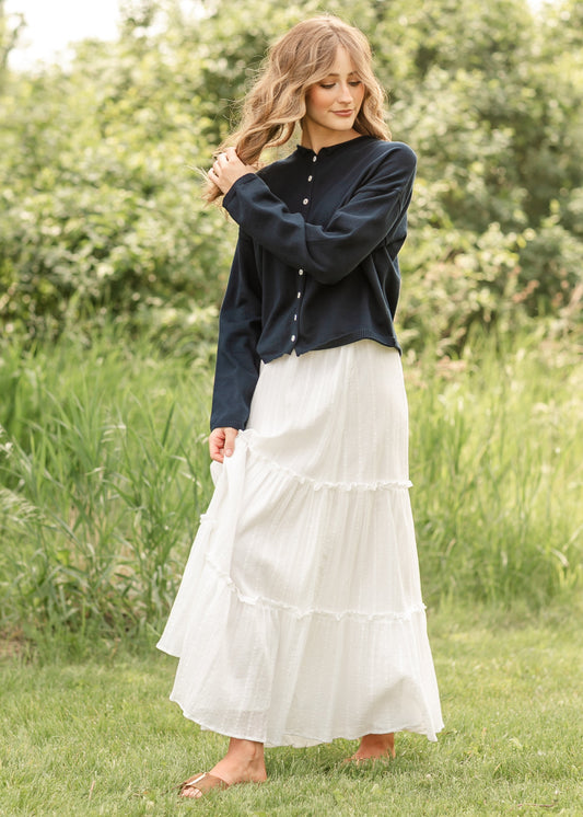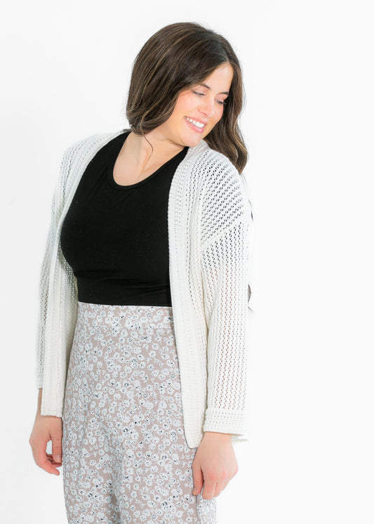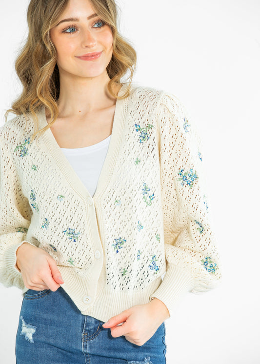 Long Sleeve Pointelle Embroidered Cardigan - FINAL SALE