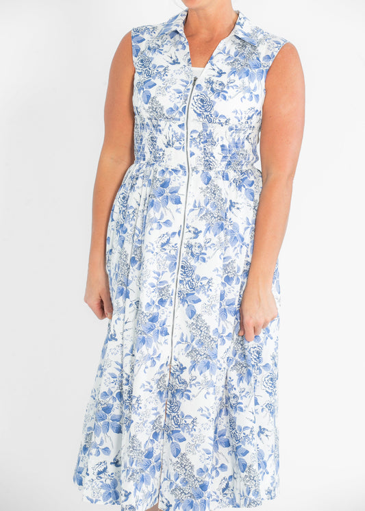 Floral Smocked Half Zip A-line Dress - FINAL SALE