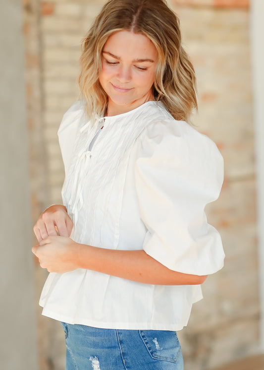 Pleated Cotton 3/4 Sleeve Top - FINAL SALE
