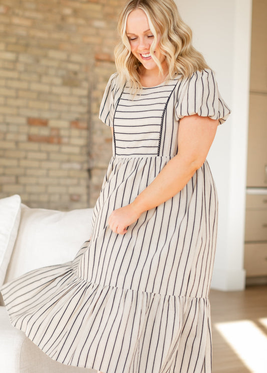 Yarn-Dyed Striped Short Sleeve Midi Dress - FINAL SALE