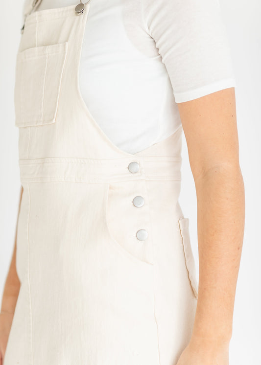 Cream Denim Jumper Overall Dress - FINAL SALE