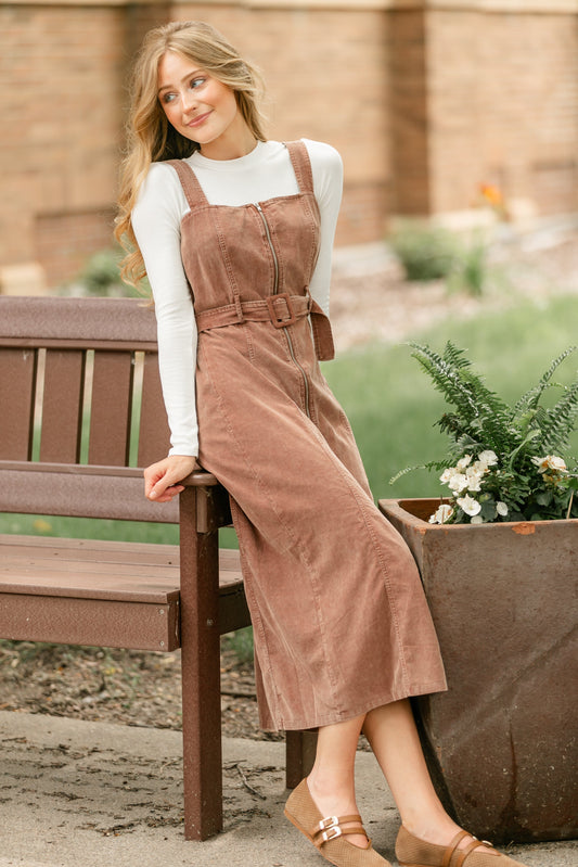 Chocolate Corduroy Overall Dress