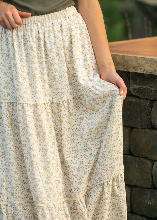 Kayleen Ivory Floral Smocked Bodice Maxi Dress