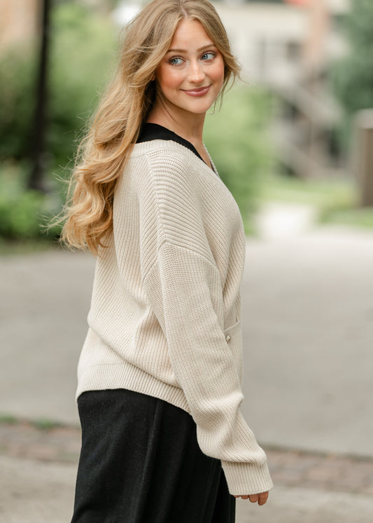 Chunky Knit Varsity Button Up Cardigan - FINAL SALE