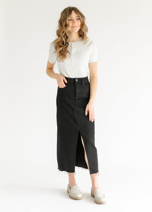 High Rise Midi Black Denim Skirt - FINAL SALE