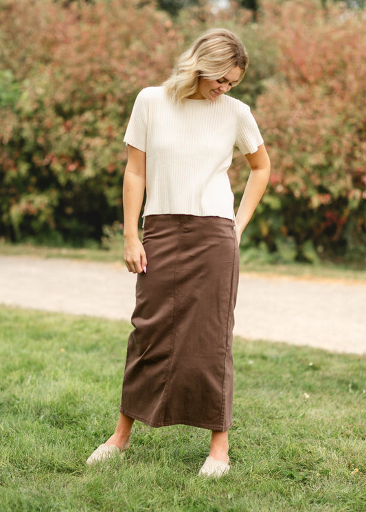 Cream Ribbed Short Sleeve Sweater - FINAL SALE