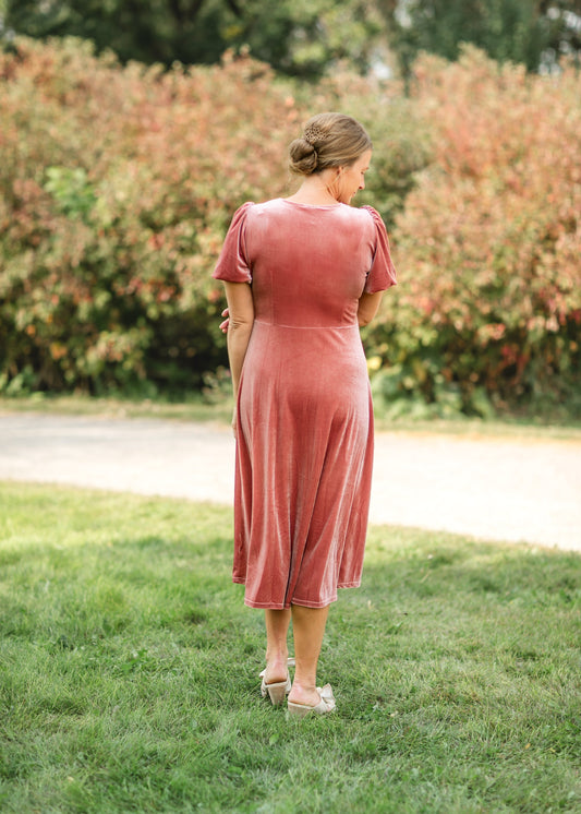 Stretch Velvet Puff Sleeve Midi Dress - FINAL SALE