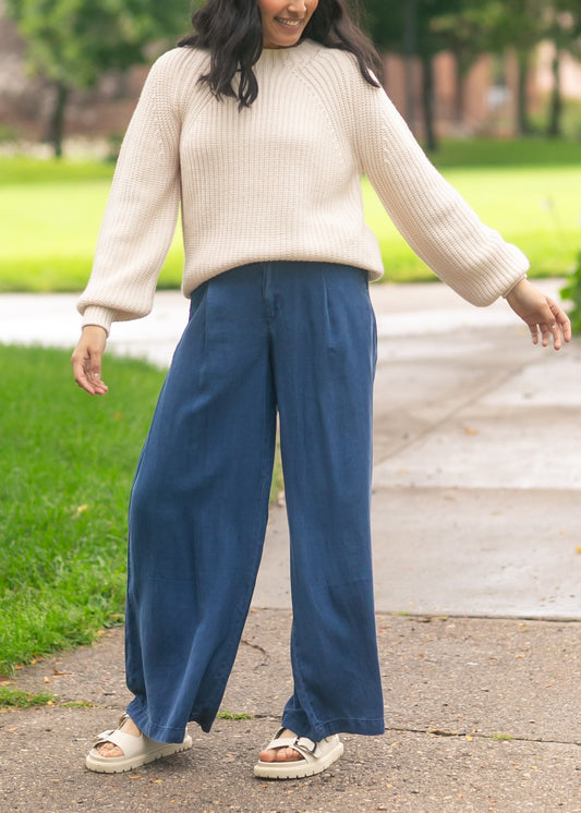 Dark Chambray Wide Leg Pants