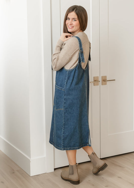 Sale 18% OffDenim V-neck Overall Midi Dress - FINAL SALE