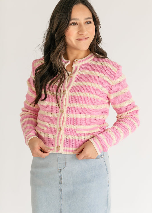 Sale 29% OffEdolie Pink Striped Button Up Cardigan - FINAL SALE