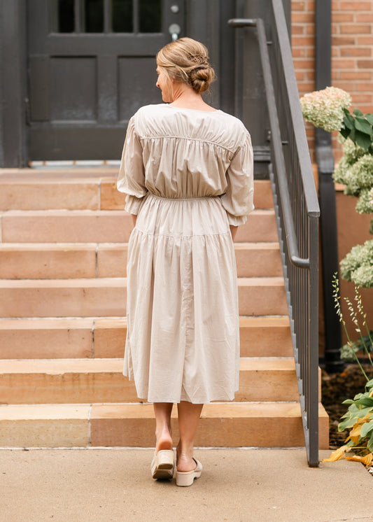 Sale 51% OffV-neck Puff 3/4 Sleeve Midi Dress - FINAL SALE