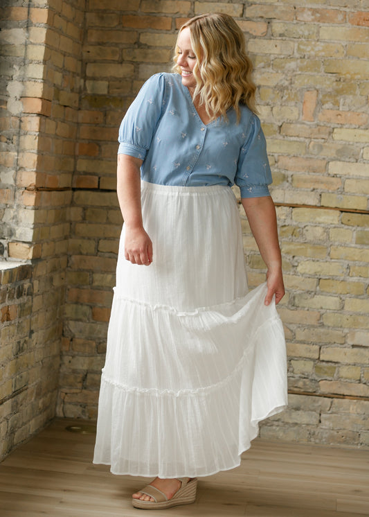 LIVERPOOL® Tiered Woven Smocked Waist Maxi Skirt - FINAL SALERegular price $79.99 USDRegular priceUnit price / per$119.00 USDSale price $79.99 USDSale