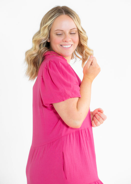 elan Pink Button Front Tiered Maxi Dress - FINAL SALERegular price $69.99 USDRegular priceUnit price / per$109.00 USDSale price $69.99 USDSale