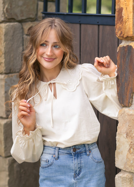 Sale 25% Off Sale 25% OffEyelet Collar Long Sleeve Top - FINAL SALE5.0Rated 5.0 out of 5 stars1 ReviewRegular price $29.99 USDRegular priceUnit price / per$40.00 USDSale price $29.99 USDSale