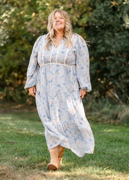 Pleated Floral Waist Tie Maxi Dress - FINAL SALE