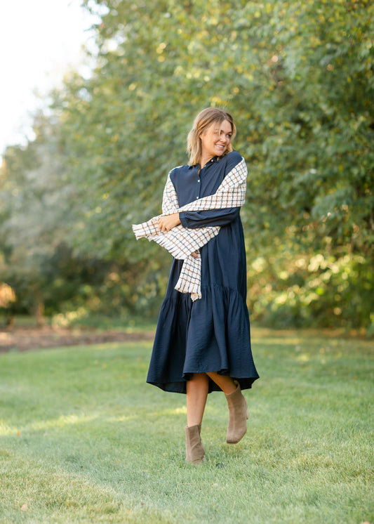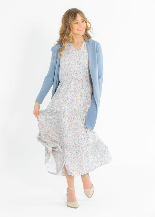 Printed Floral V-neck Button Up Midi Dress - FINAL SALE
