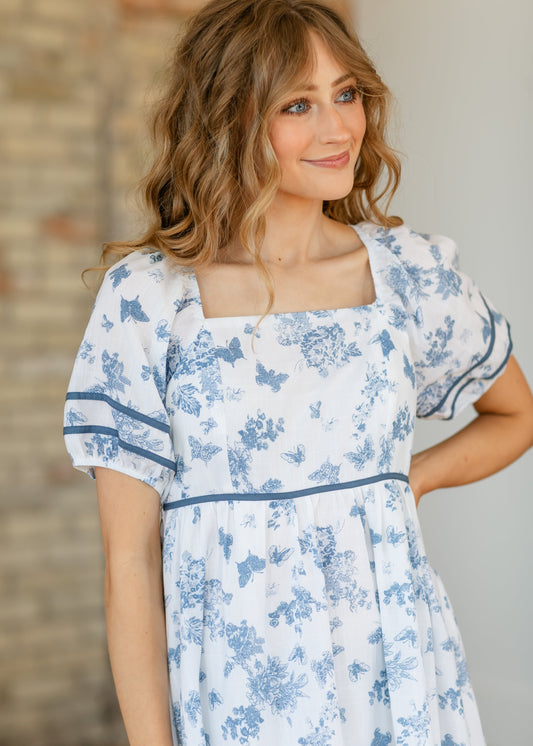 Floral Bubble Sleeve Midi Dress - FINAL SALE