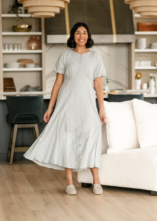 Button Up Puff Sleeve Blue Floral Dress - FINAL SALE
