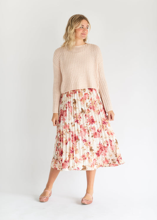 Pink Pleated Floral Satin Maxi Skirt - FINAL SALE