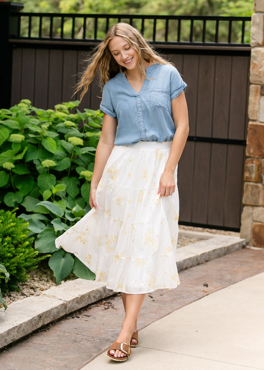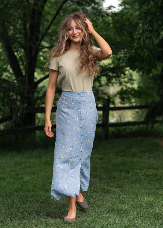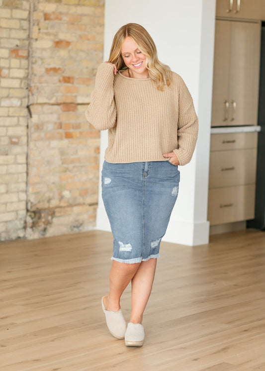 Medium Wash Back Slit Denim Skirt - FINAL SALE