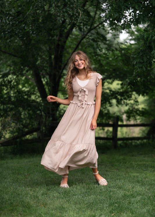 Bow Detail Smocked Midi Dress - FINAL SALE