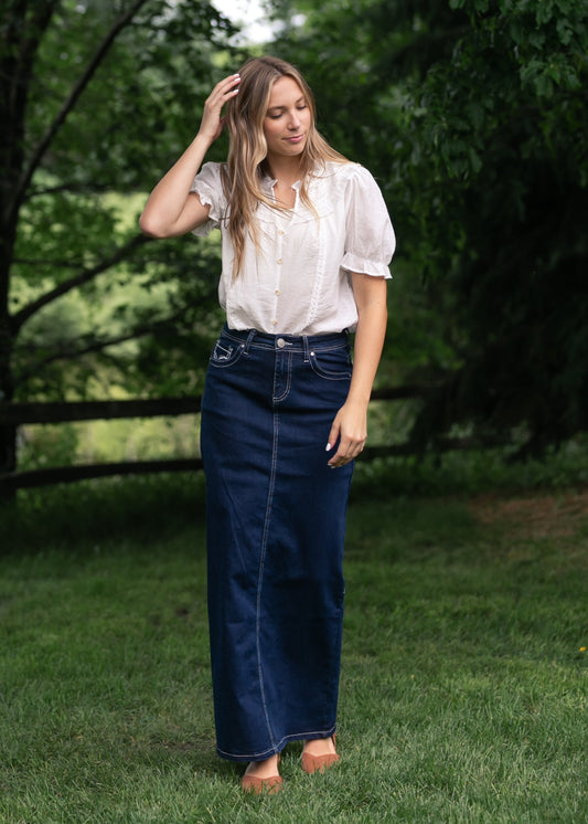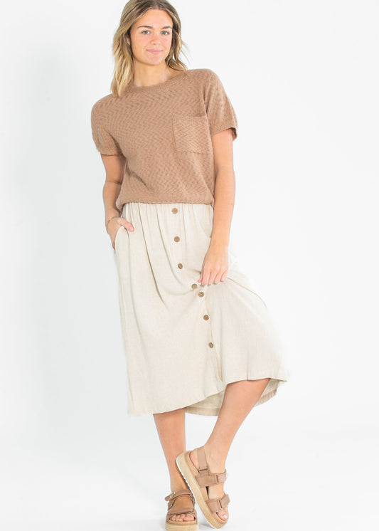 Button Down Linen Blend Midi Skirt - FINAL SALE
